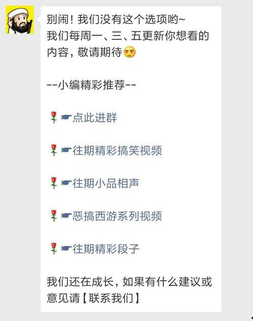 2. “神回复”系列:在这个系列中,网友们用幽默风趣的语言,对各种话题进行神回复。比如,有人问:“为什么猪圈里没有猪?”网友回复:“因为它们都去参加高考了!”这样的神回复让人捧腹大笑,同时也展现了网友们的智慧。
